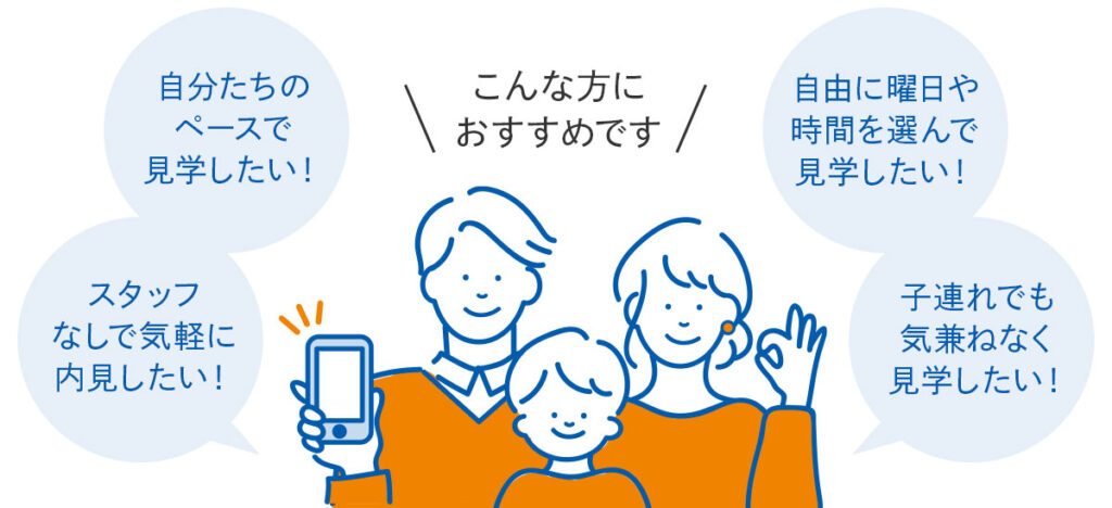 WEB上でいつでも予約できるので、自由な時間に気軽にモデルハウスの見学が可能です。